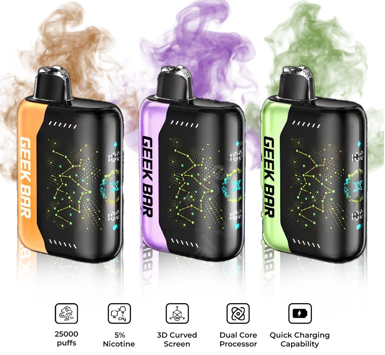 Geek Bar Pulse X is the world's first 3D curved screen, providing an extremely immersive and vivid visual experience absolutely a major milestone in the history of vape innovation. With brighter lights and more advanced controls, PULSE X delivers a starry UI. The dots of light accompany you throughout vaping time.