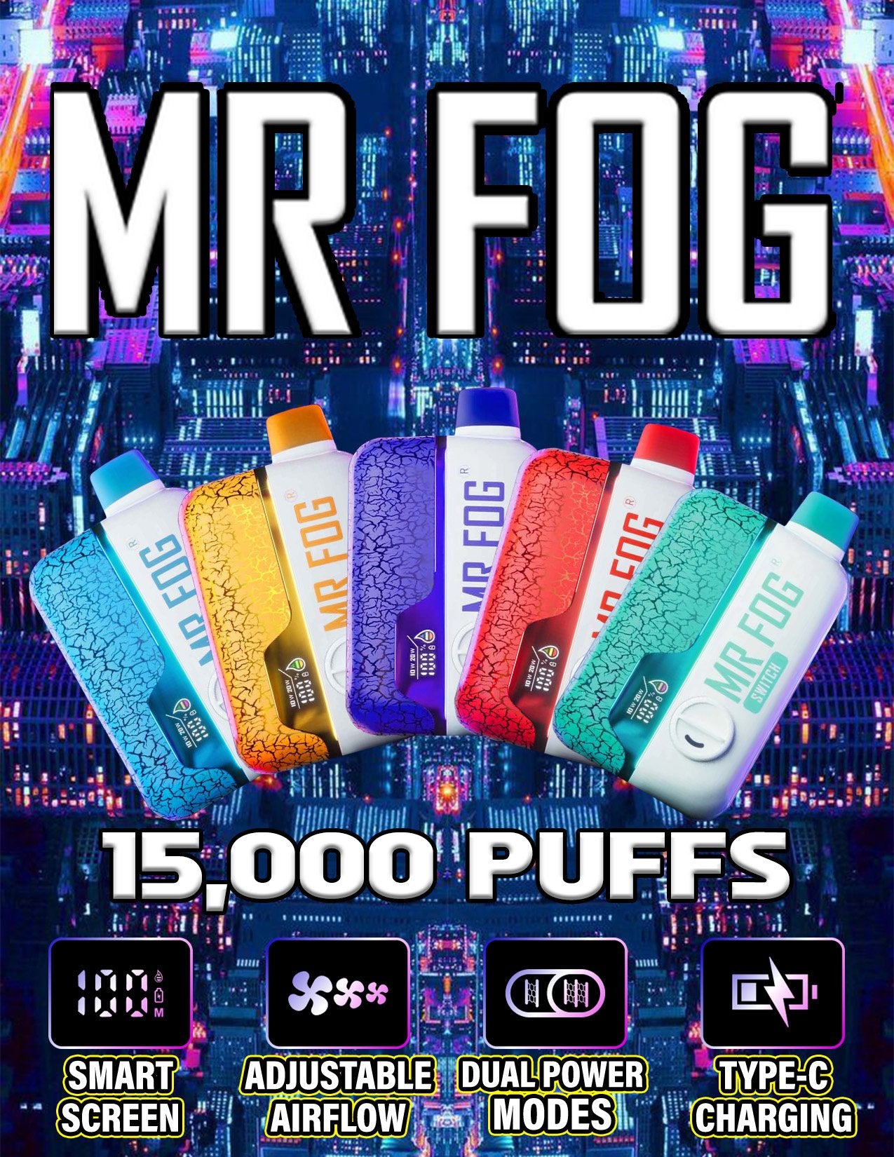 Elevate your vaping with the MR FOG SWITCH SW15000 – smart, powerful, and built for flavor!
