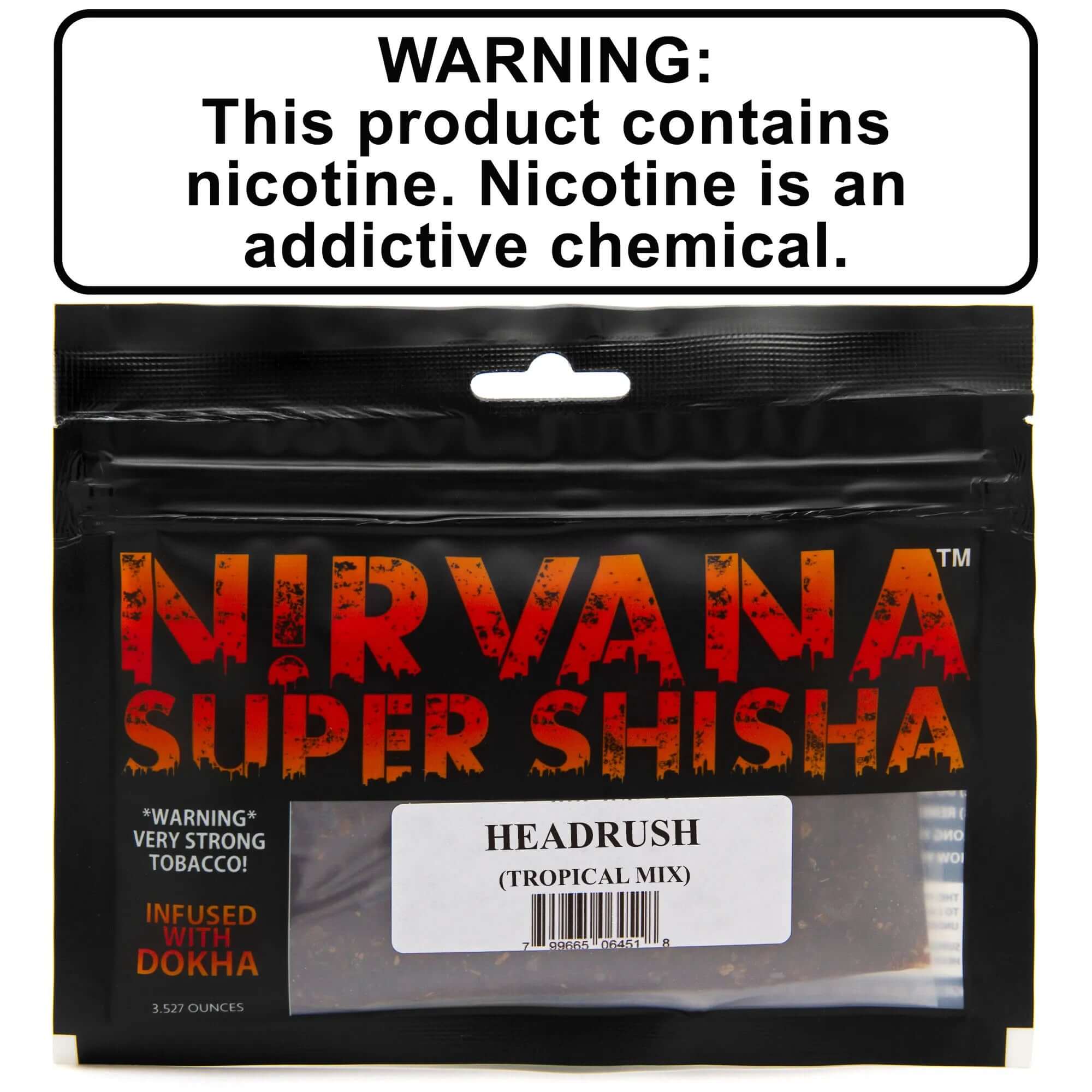 Are your customers looking for a big buzz in their smoke session? Nirvana Super Shisha is perfect for the consumer looking for that next level smoking experience. This revolutionary shisha line comes from the minds of highly experienced Dohka producers with a strong background in the hookah industry. See the Best Sellers List Nirvana uses Golden Virginia tobacco leaves as the base for all of their flavors, allowing for a sweeter taste with great flavor longevity. This premium quality tobacco leaf can withstand a great deal of heat, something our current customers love based on the massive smoke cloud output. Each blend is packed with a rewarding amount of flavors, and most of their flavor cannot be found within another shisha brand. The Nirvana flavor collection earns the name "Super Shisha" because of the buzz factor from their dokha blend. This traditional, high-nicotine Middle Eastern pipe tobacco has been enjoyed for over 500 years, and Nirvana is the only company to master it on a shisha level. The dokha blend comes from the tip of the tobacco leaf containing the most nicotine, and can most commonly be found inside Medwakh pipe. The dokha blend used within Nirvana is unflavored and will have no effect on the taste of these shisha blends. This mix of old and new trends creates a unique and powerful shisha smoking experience, with full flavor and massive clouds. Nirvana Shisha is prepared just like regular shisha; no additional preparation is needed, though Nirvana is very buzzy and recommended for more experienced shisha smokers. Keep this in mind when placing Nirvana on your menu. Nirvana Shisha is available at our amazing wholesale prices in 100g and 1000g resealable pouches. Pick up a few to test them out, or stock up on your favorites and best-sellers. Each pouch features unique and engaging label art that almost jumps off the shelf at you, while also providing you with intriguing flavor names that call to be decoded by your customers. So next time a customer comes in looking for something premium that gives a buzz, you can point them to the shelf awesomeness. ( The shelf in your store with the Nirvana on it that is continuously restocked)