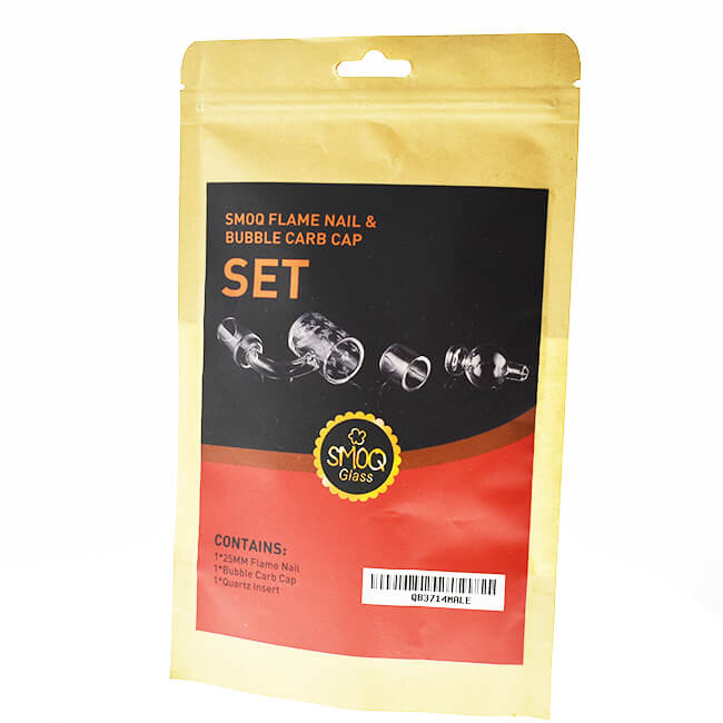 Introducing the Smoq Flame Nail & Bubble Carb Cap 18MALE, an essential accessory for optimizing your dabbing experience. This set includes a flame nail and a bubble carb cap, meticulously designed to provide efficient heat distribution and airflow control for vaporizing concentrates.
