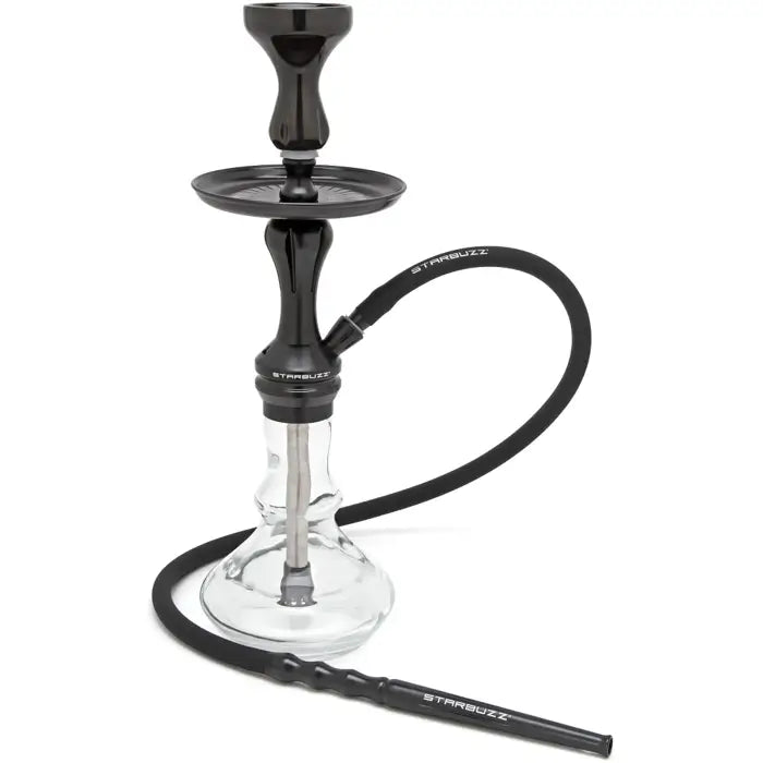 The Starbuzz Mini was designed to be a high-end compact hookah. At 19.5" tall these are much easier to incorporate into a table-top set up or pack up a travel with. All components are made out of high quality steel to help you get years of life out of this bad boy. The down stem has a built-in diffuser which will help keep things a little quieter and provide a large, easier draw so that you can max out your thundercloud potential. Each hookah comes with a high quality ceramic bowl, a medical grade, washable silicone hose and a heavy duty pair of matching tongs.