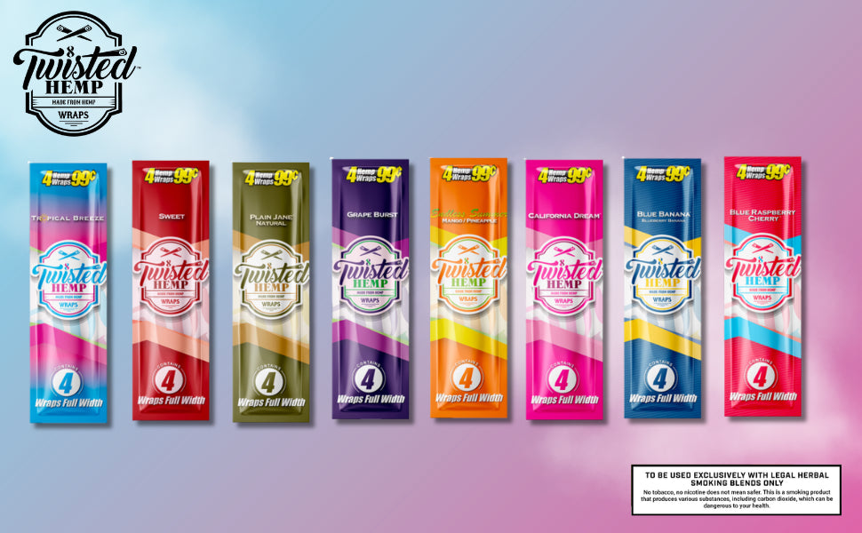 Indulge in the ultimate smoking experience with Twisted Hemp Designer Wraps. With tantalizing flavors like Hang 10 Mango, Honey Citrus, and Vanilla Smooth, these wraps deliver a smooth and flavorful smoking session every time.